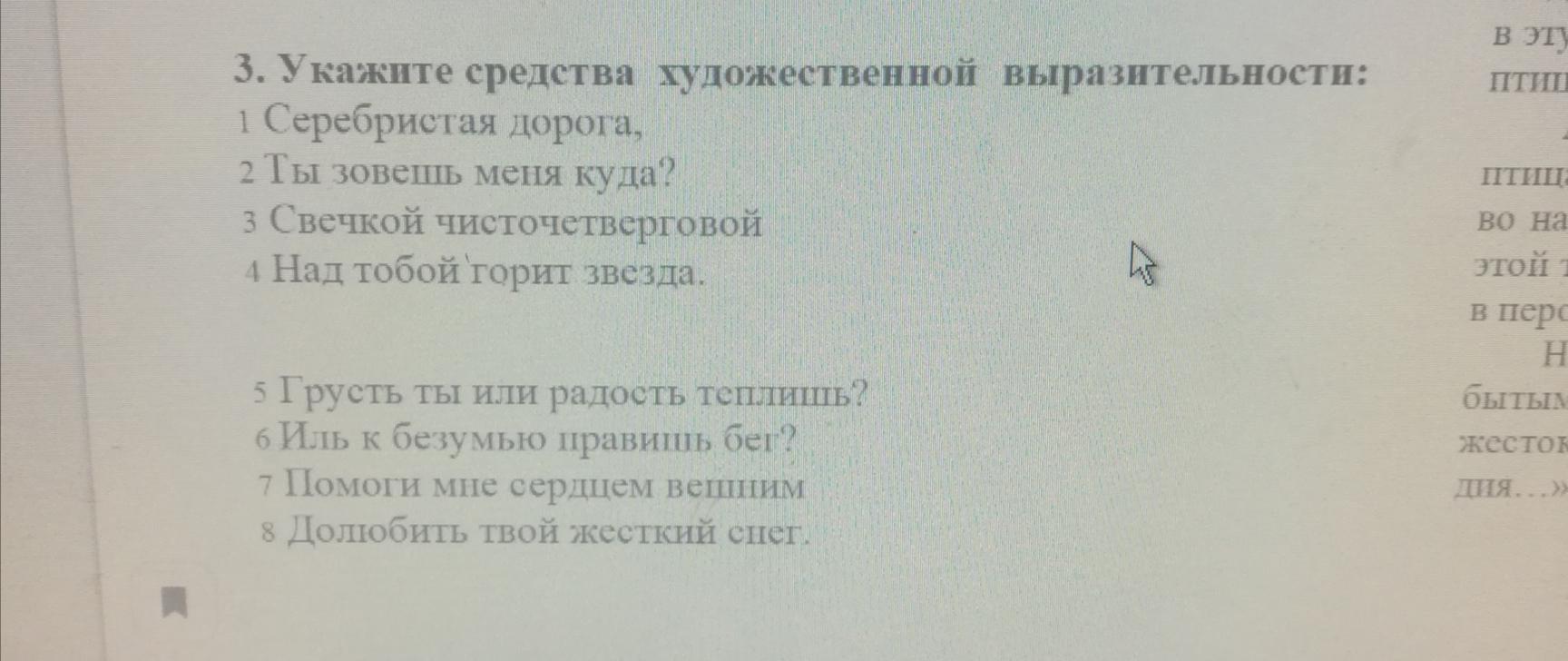 Вы немного не поняли, надо по цифрам. К примеру, 1 - эпитет. 2 - метафора и т.д