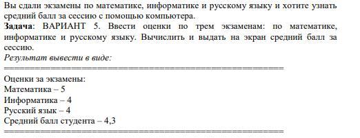 Все суммы складываются и потом делятся на их количество 5+4+4=13 потом 13/3=4,3
