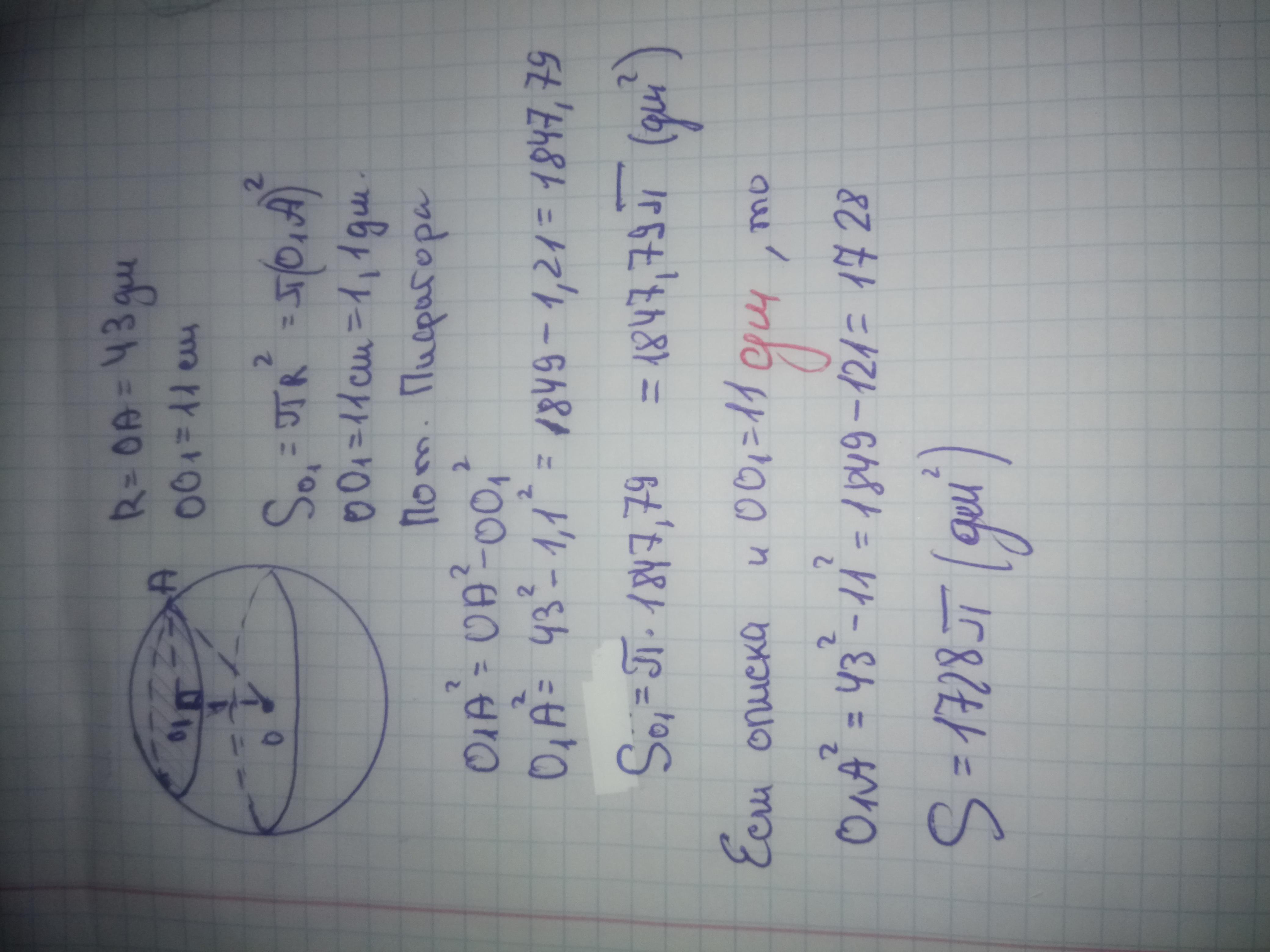 плоскостью на расстоянии 11 см от центра. Найдите площадь сечения.
