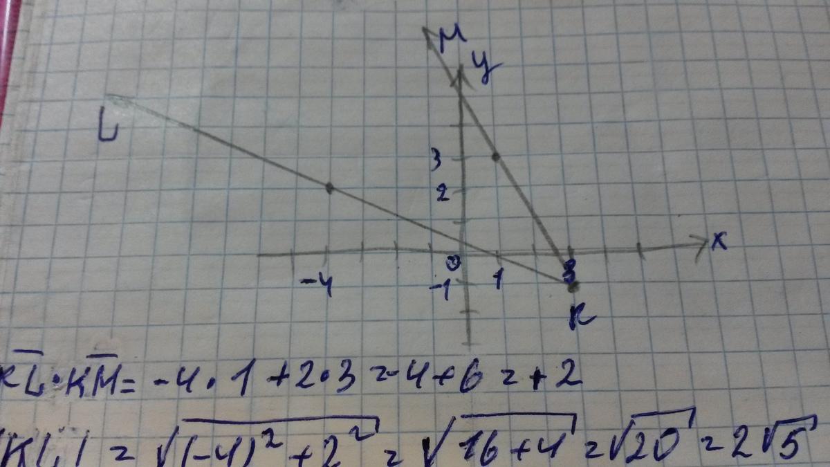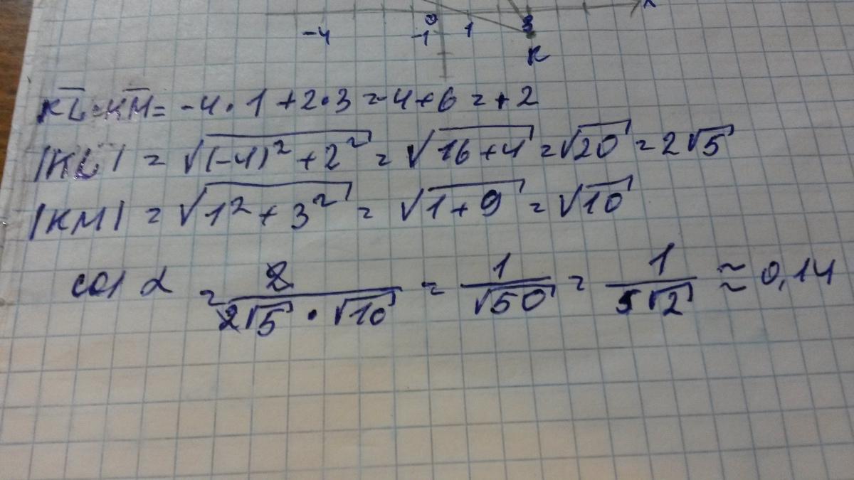 3. Вычислите косинус угла между векторами KN и KM
