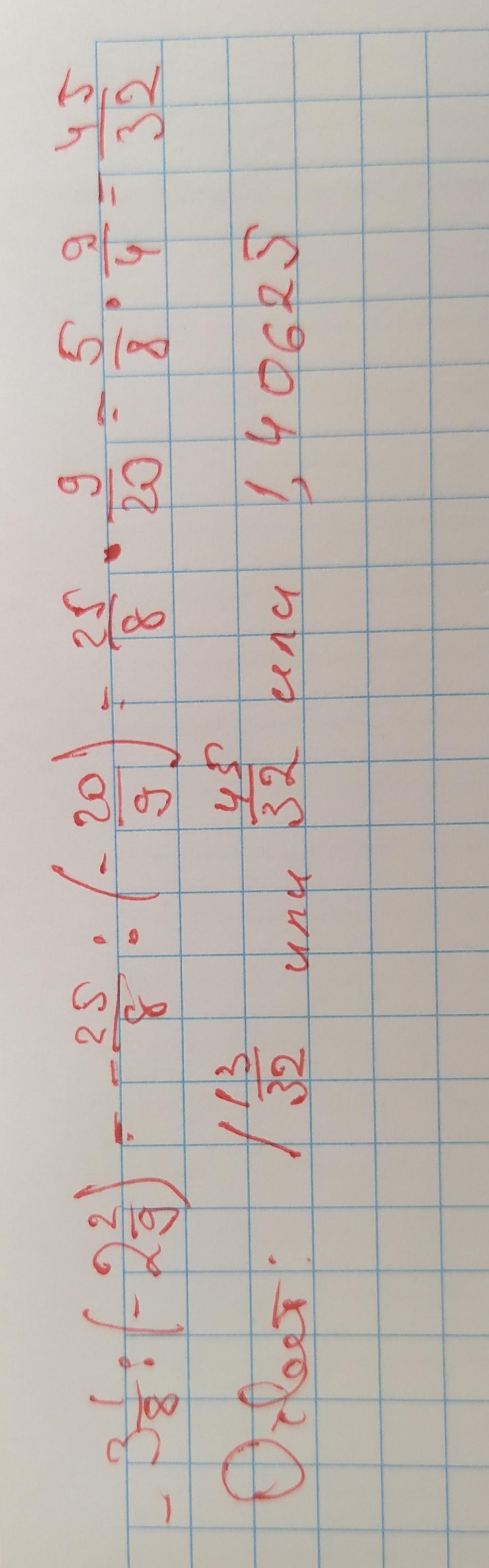 Ответ: 25/8:20/9=25*9/(8*20)=1,25*9/8=11,25/8=45/(4*8)=1 13/32