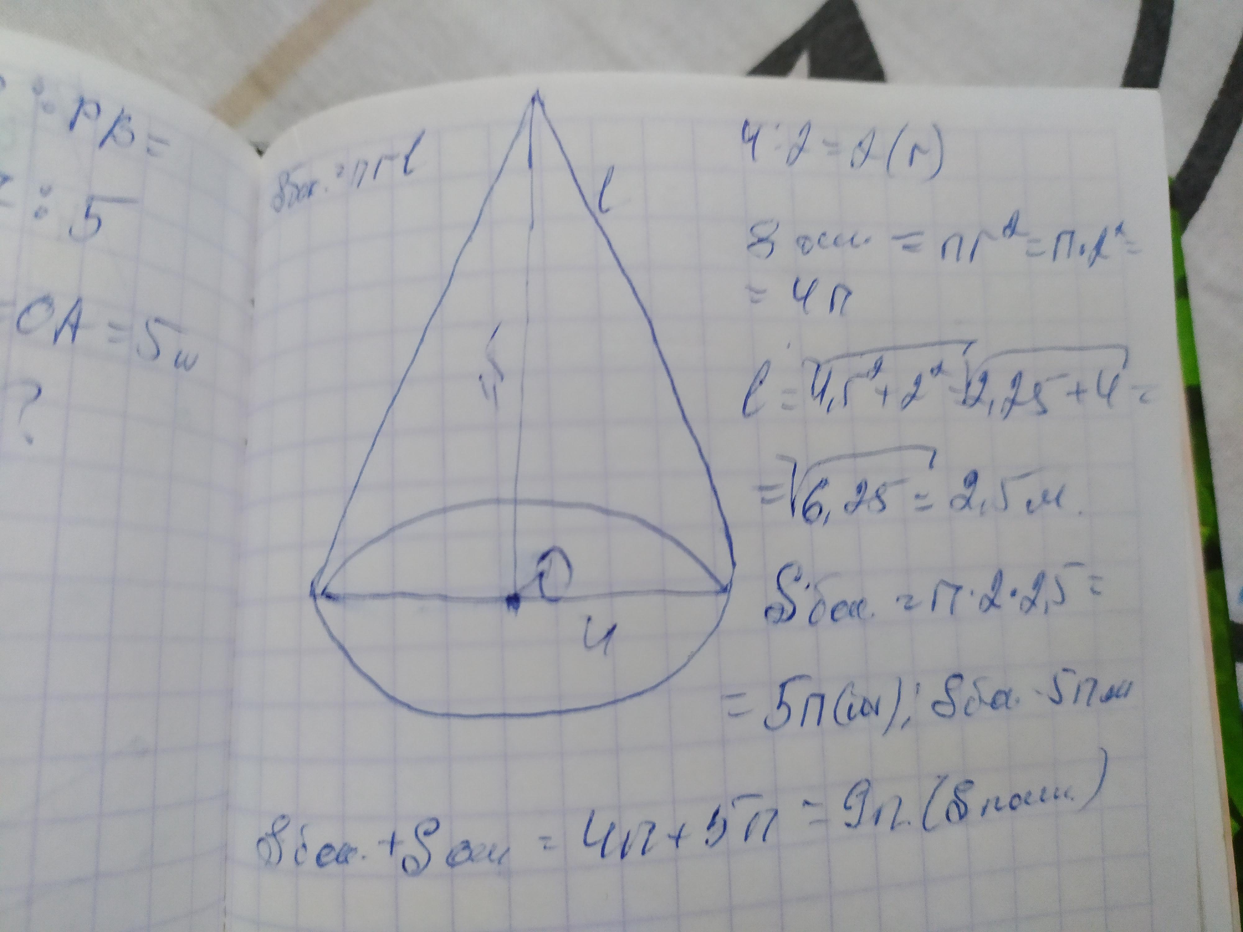 Sпол=Sбок+Sосн=5π+4π=9π(м²)