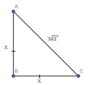 Итак, пусть АВ = ВС = х, тогда, по условию задачи, АС = х√2.