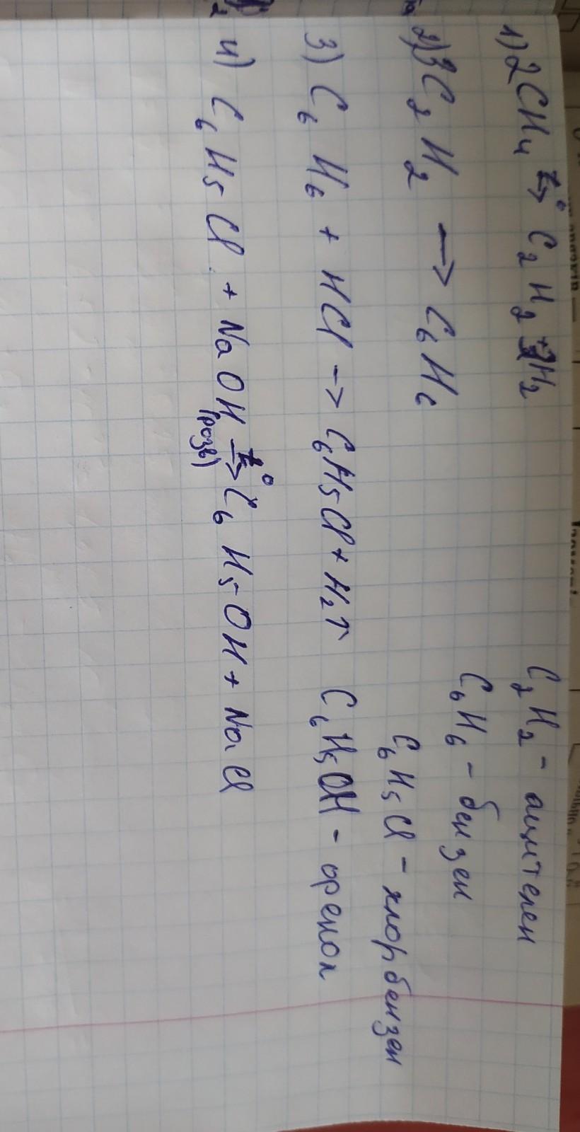 СН 4 → С 2 Н 2 → С 6 Н 6 →С 6 Н 5 Cl→С 6 Н 5 ОН