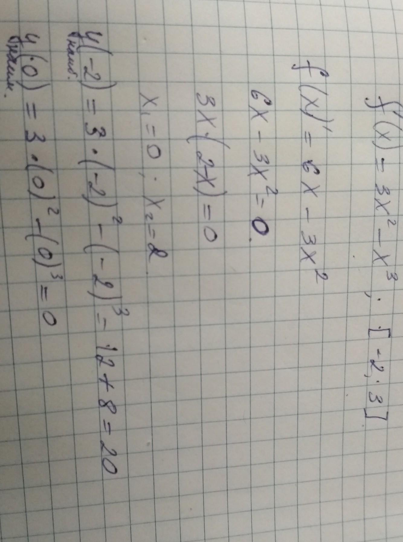 у(0)=3*(0)²-(0)³=0-наименьшее значение