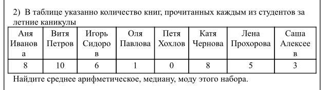 Середнее=(8+10+6+1+0+8+5+3)/8=4,75