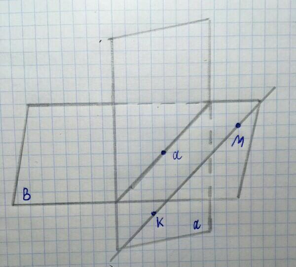 Плоскость а и В имеют общую прямую а и пересекают прямую КМ в точках К и М соответственно.