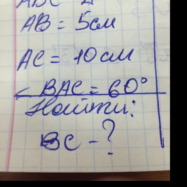 Sin60=bc/ac. Корень из 3/2=х/10. Х=5 * корень из 3