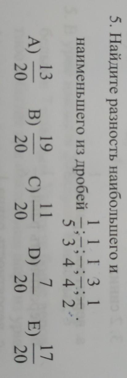 3/4 - 1/5 = 0,75 - 0,2 = 0,55 = 11/20; Ответ С
