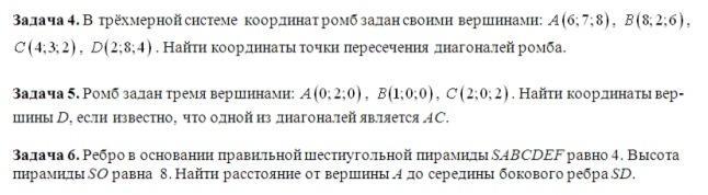 3)Ребро в основании правильной шестиугольной пирамиды SABCDEF равно 4. Высота пирамиды SО равна 8.Найти расстояние от вершины А до середины бокового ребра SD.