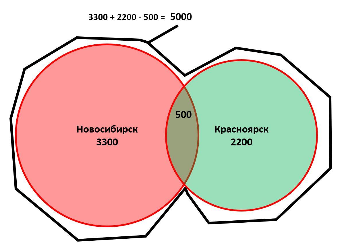 Какое количество страниц (в тысячах) будет найдено по запросу Новосибирск | Красноярск? Графически подтвердите полученный результат.