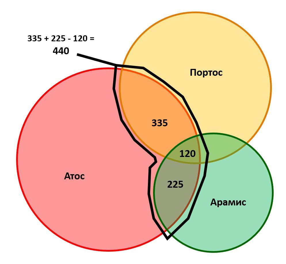 Какое количество страниц (в тысячах) будет найдено по запросу Атос & (Портос | Арамис)? Графически подтвердите полученный результат.