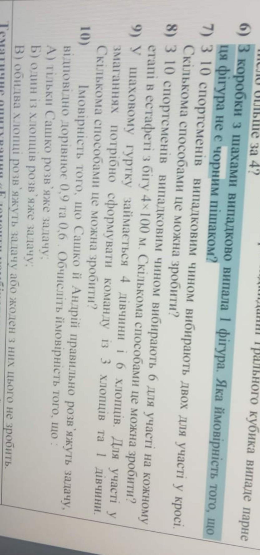 3 коробки з шахами. 8 чорних пiшак в коробке, значить 24 чорной пішаки в три коробках.Всього 32 × 3 = 96 фігур. 24 ÷ 96 = 0,25 <-Імовірність того, що випаде чорна пішак. 1 - 0,25 = 0,75 <- Імовірність того, що не випаде чорна пішак