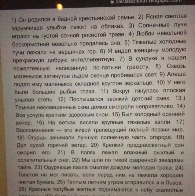 1) родился, в бедной, крестьянской семье. 2) Ясная,светлая, задумчивая улыбка лежит на облаках. Солнечные лучи играют на густой траве.