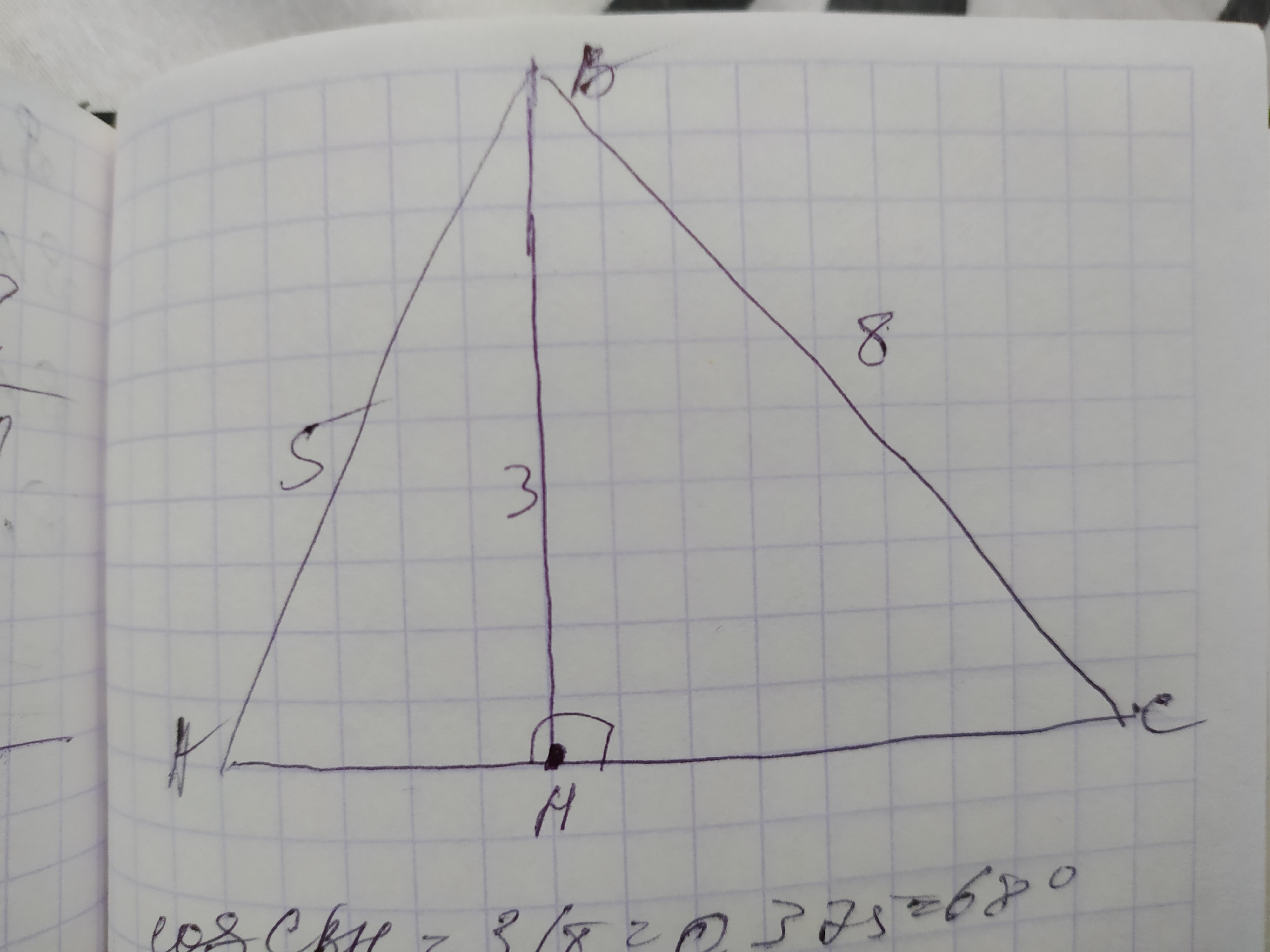 Из точки к прямой проведены две наклонные длиной 5см и 8см. Какой угол образует вторая наклонная с прямой, если проекция первой наклонной на прямую равна 3 см?