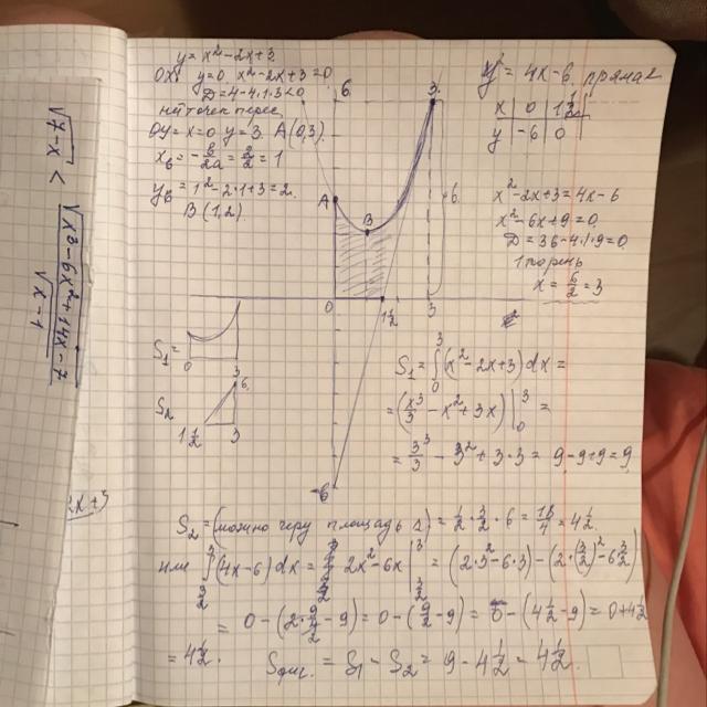 Мы получили единственную точку пересечения прямой и параболы => площадь фигуры будет равна 0, так как это одно единственная бесконечно малая точка.