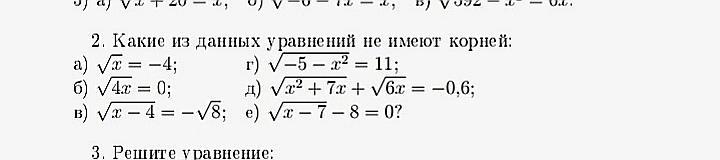 В а), в)д) - нет корней. т.к. корень четной степени не может быть отрицательным, как и сумма корней.