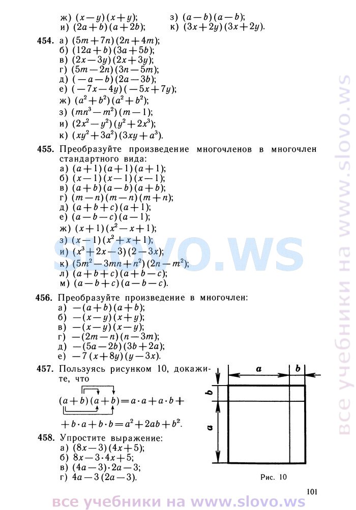 #458. (8x-3)(4x+5)=8xcdot 4x+8xcdot 5-3cdot 4x-3cdot 5=\=32x^2+40x-12x-15=32x^228x-15\\8x-3cdot 4x+5=8x-12x+5=-4x+5\\(4a-3)cdot 2a-3=8a^2-6a-3\\4a-3(2a-3)=4a-6a+9=-2a+9\\#464.; ; 2x+2y=2(x+y)\\ax-ab=a(x-b)\\a^2+a=a(a+1)\\ax+bx+cx=x(a+b+c)\\6a-3=3(2a-1)