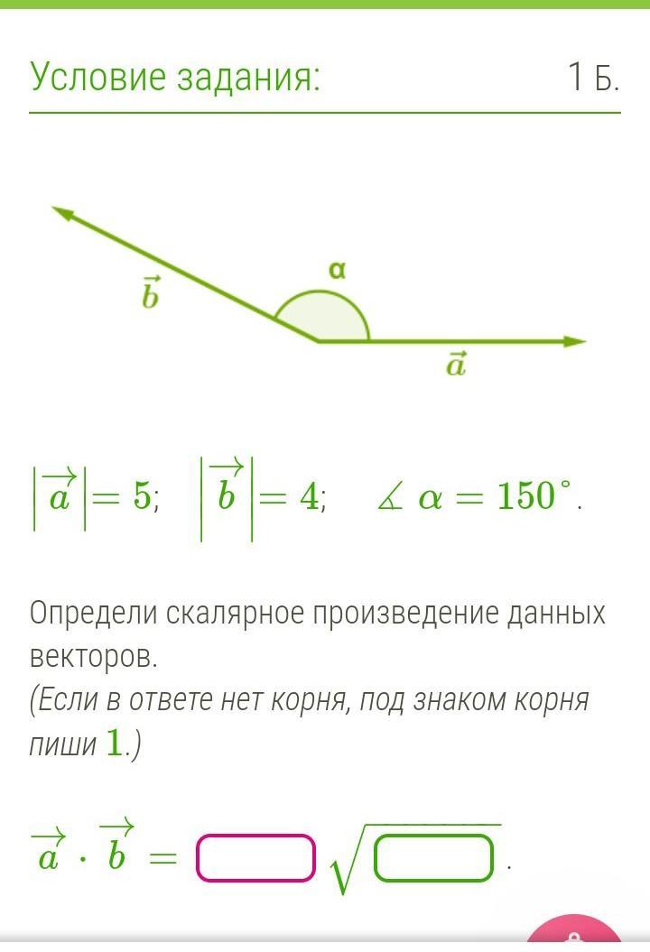 a*b = 5*4*cos150 = 20*(-√3/2) = -10√3.
