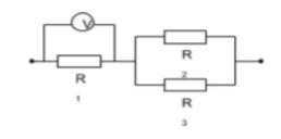 схемі, якщо R1=5Ом, R2=12Ом, R3=3Ом, а вольтметр