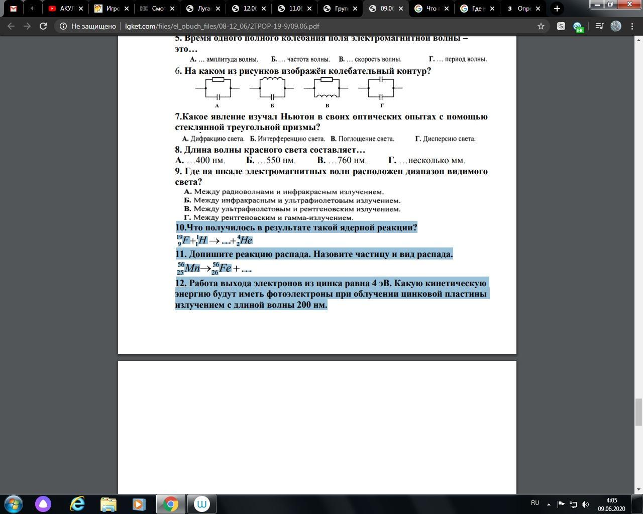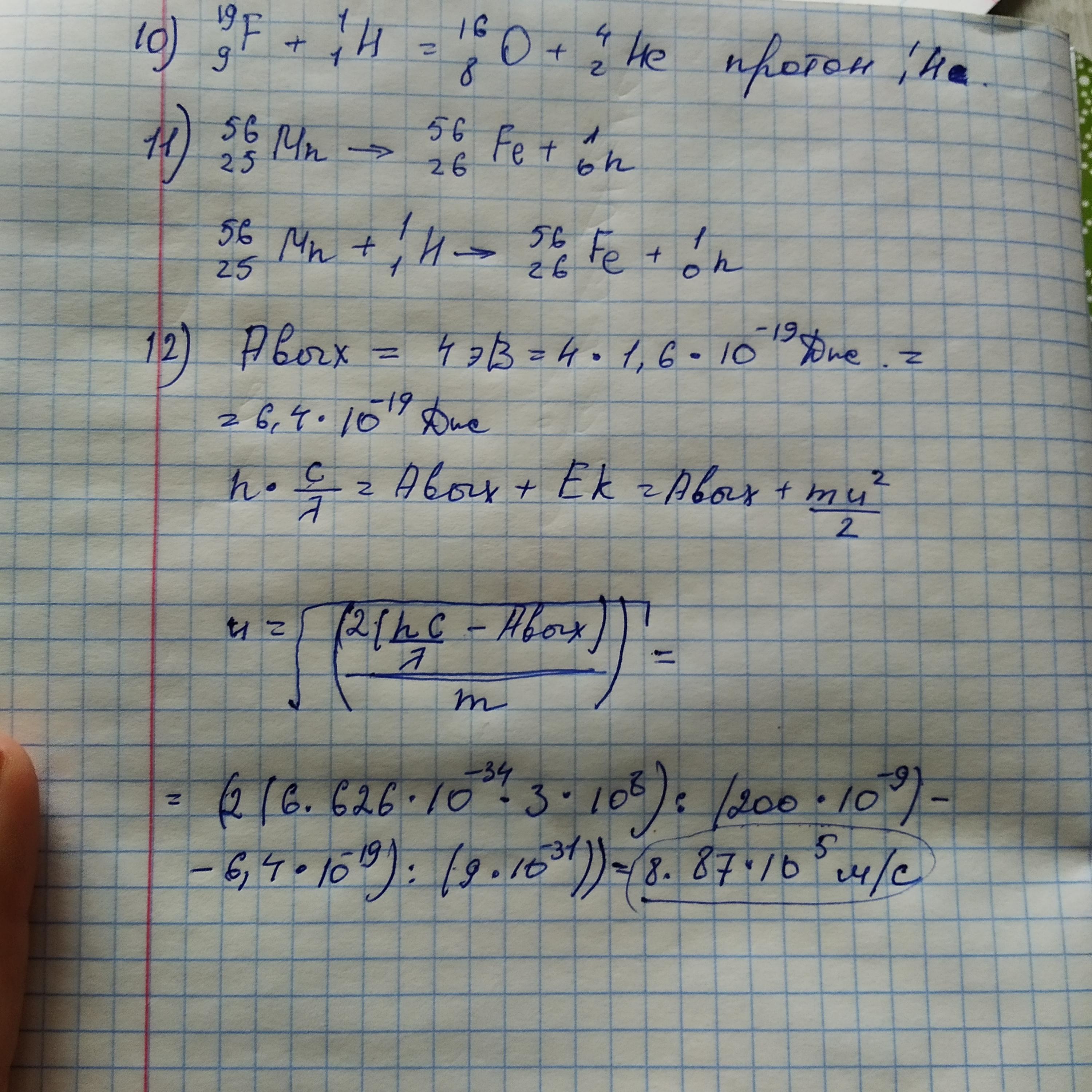 12) Авых = 4 эВ = 4*1.6*10^-19 Дж = 6.4*10^-19 Дж