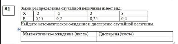 Е(X)=-2*0,15+(-1)*0,2+2*0,25+3*0,4=-0,3-0,2+0,5+1,2=1,2.
