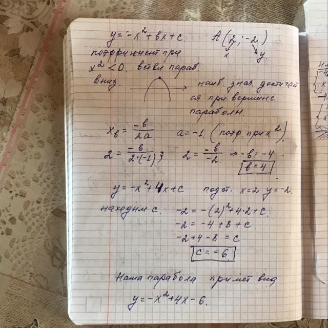 Квадратичная функция y = −x2 + bx + c при x = 2 принимает наибольшее значение, равное −2. Найдите значение bc.