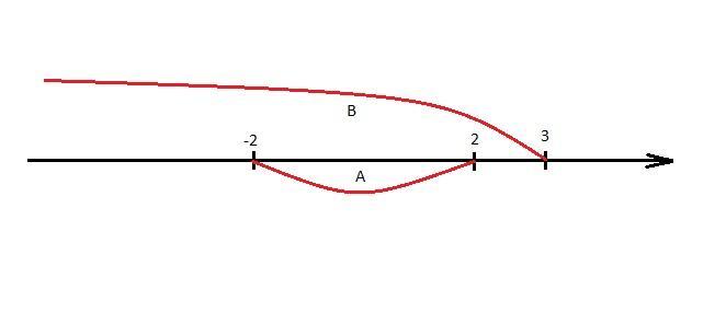 B \ A = {х | х < -2 U 2 < х ≤ 3} (точки, принадлежащие B, но не принадлежащие A)