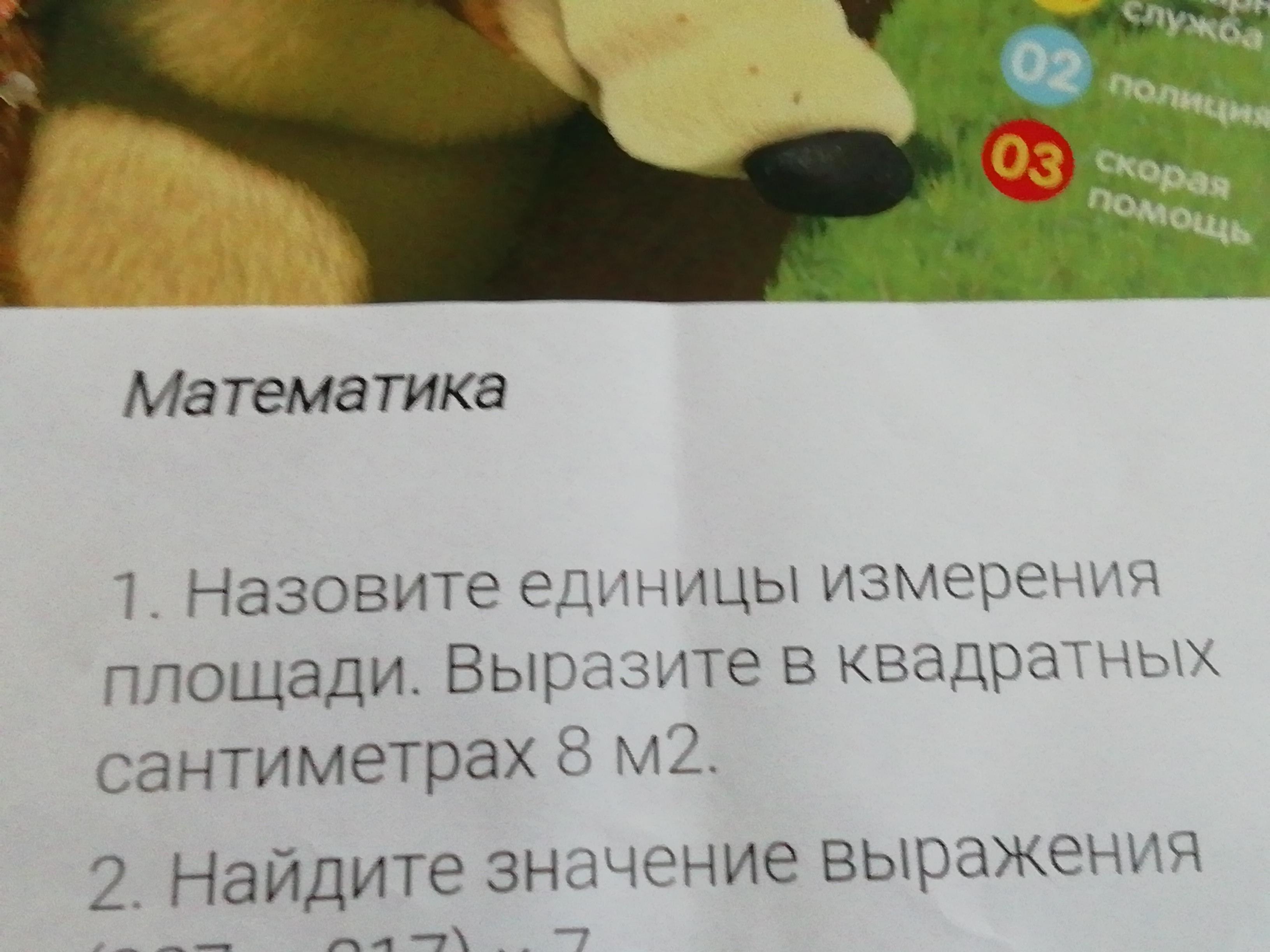 Назовите единицы измерения площади. Выразите в квадратных сантиметрах 8 м2