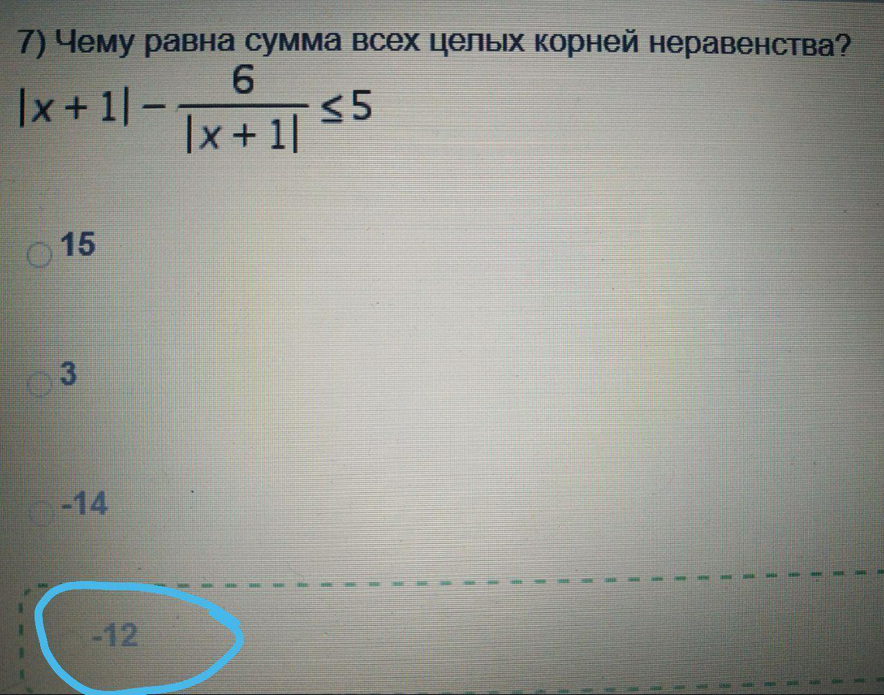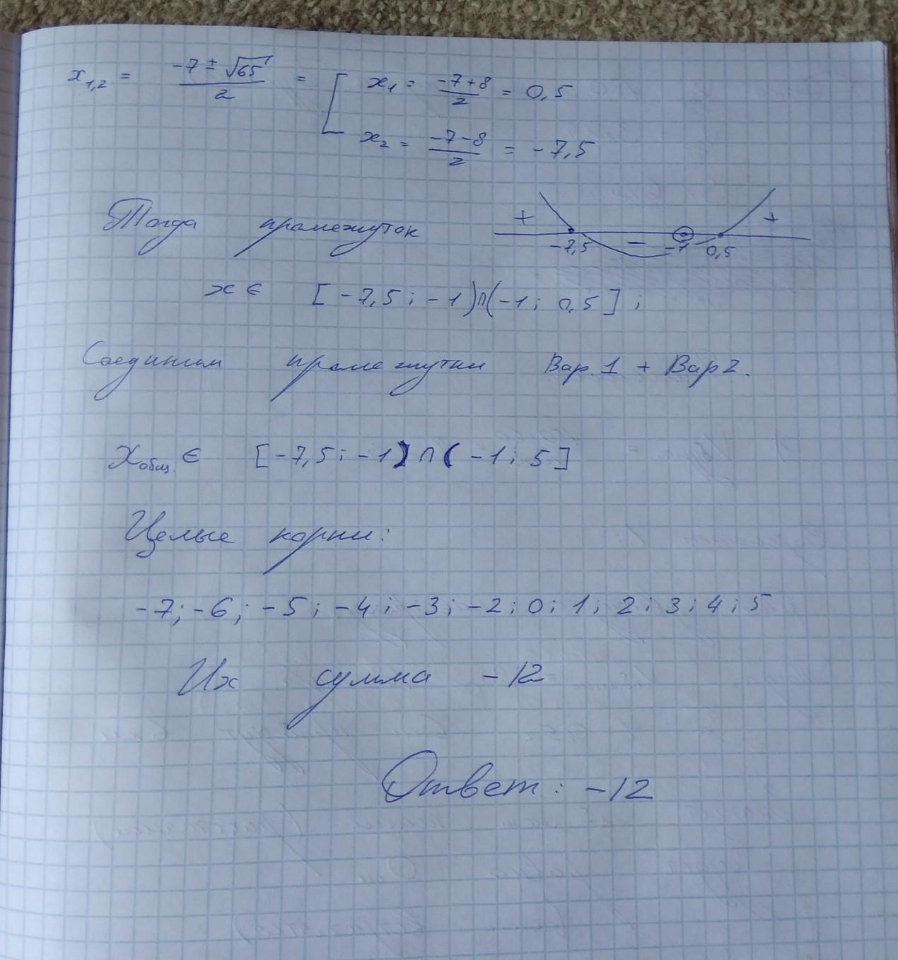 Ответ: сумма всех целых корней неравенства = -12