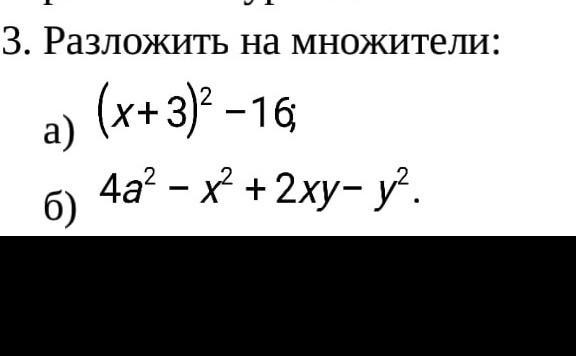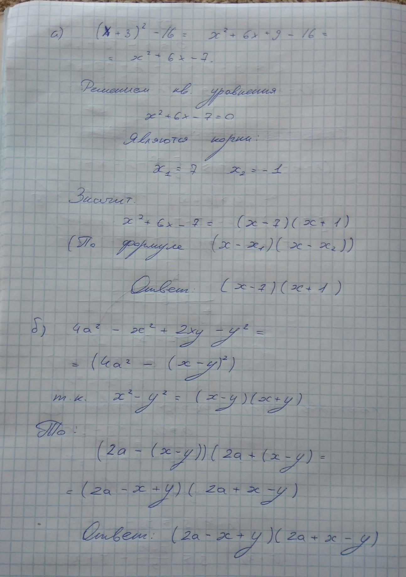 а) (х+3)²–16=(х+3–4)(х+3+4)=(х–1)(х+7).