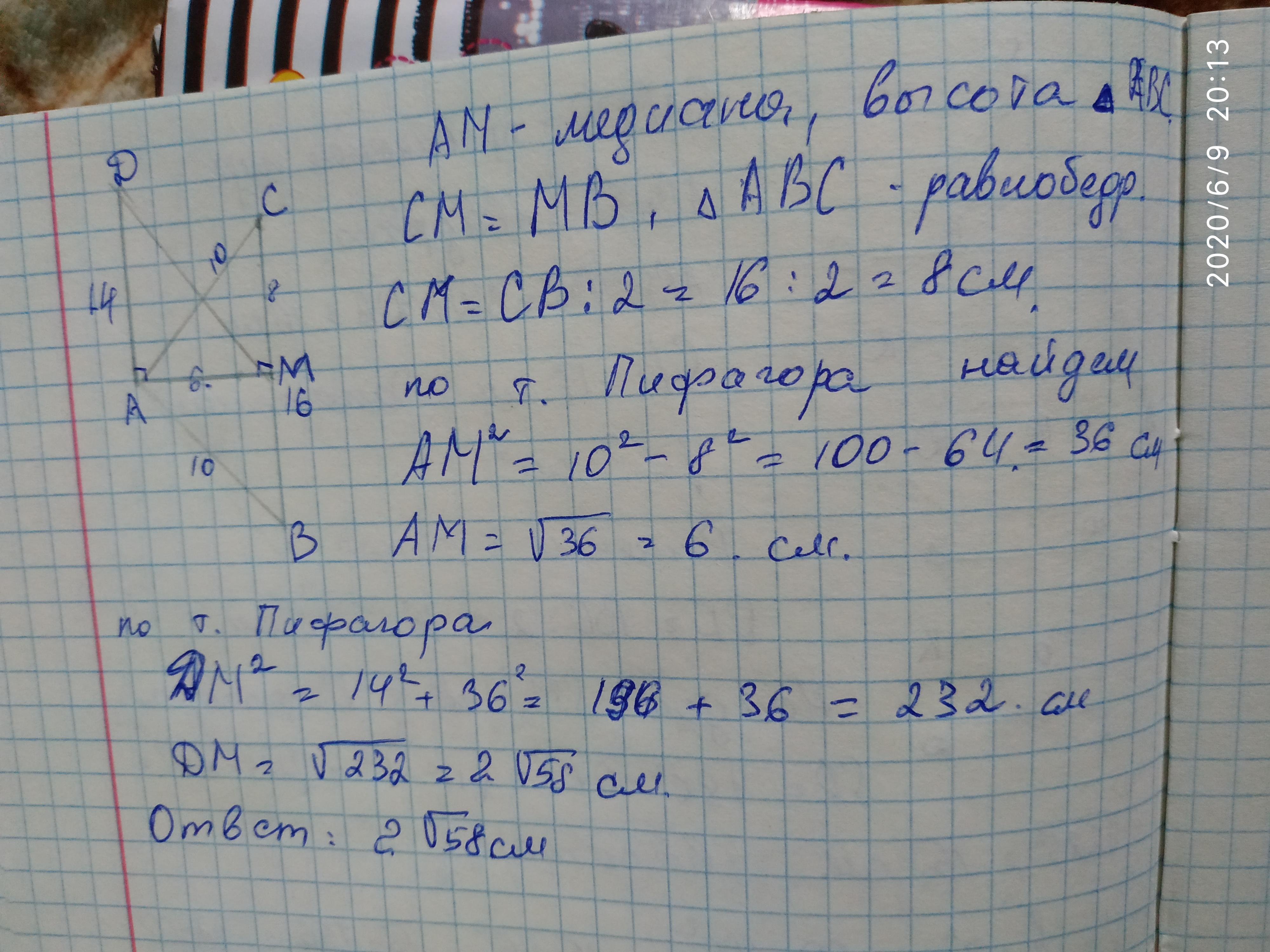 5.В равнобедренном треугольнике АВС основание ВС=16 см, боковая