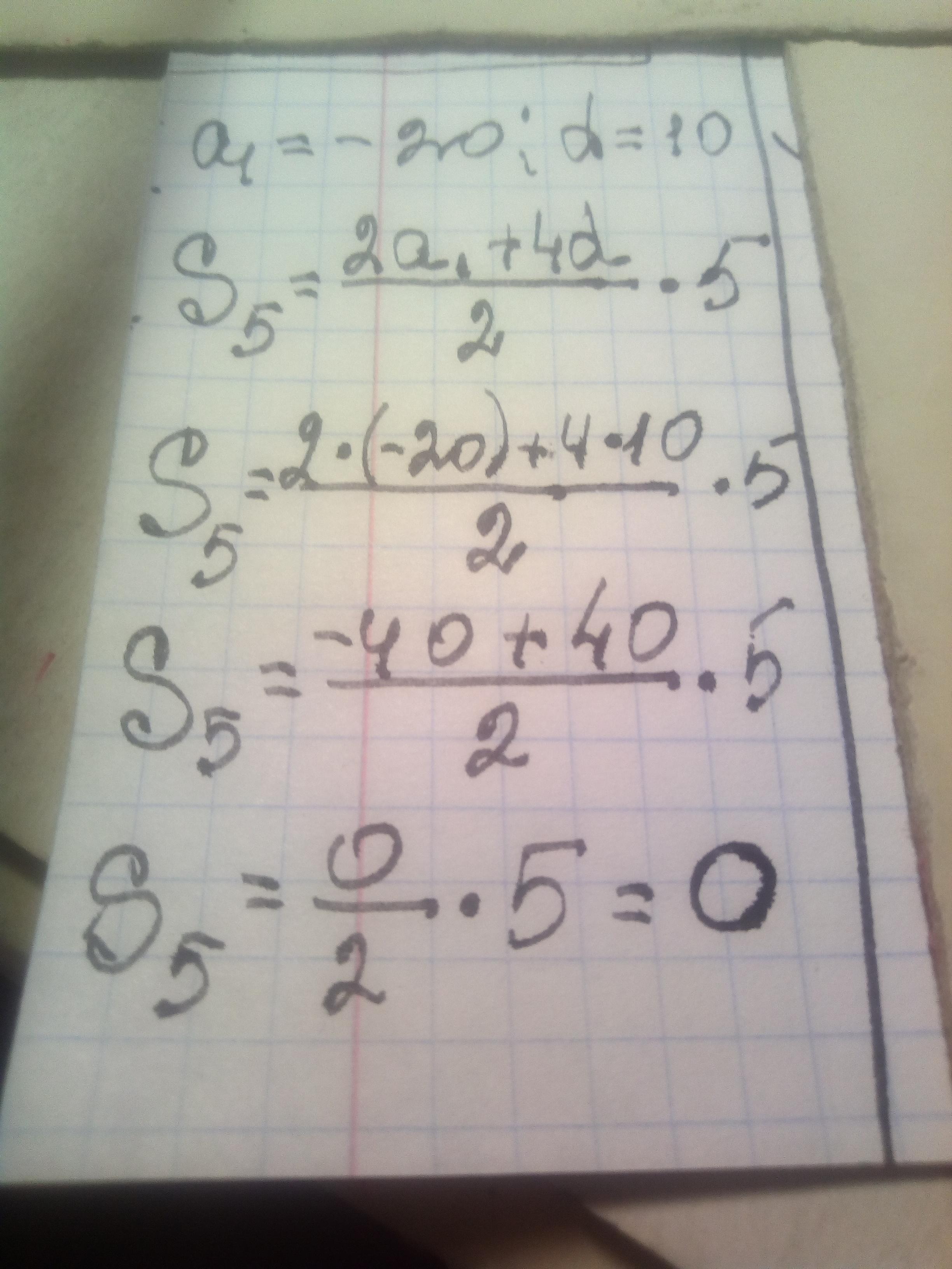 Найдите сумму первых пяти членов арифметической прогрессии, если её первый член равен А) -20, а разность равна 10