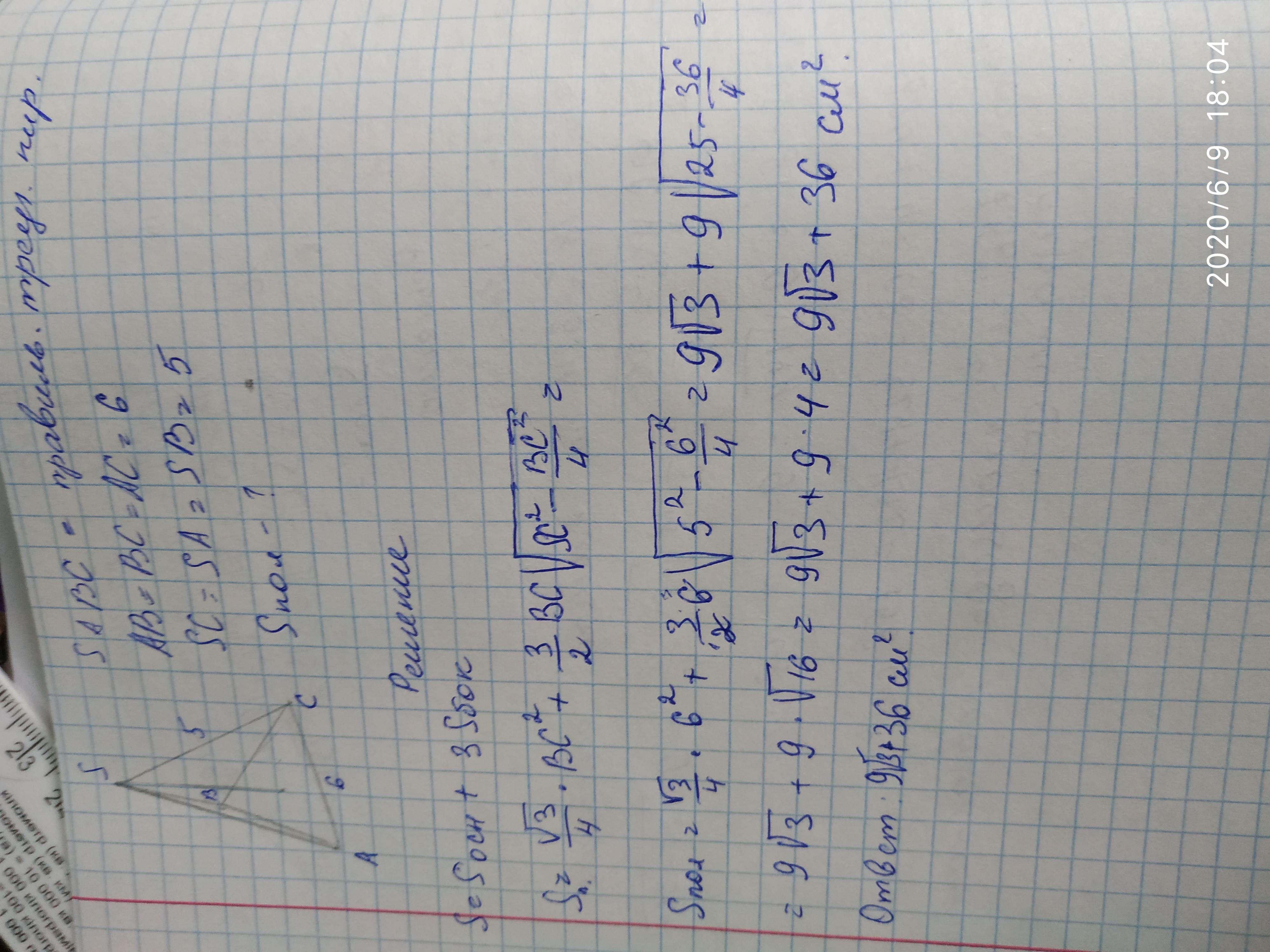 2.Задание..Сторона основания правильной треугольной пирамиды равна 6см, а боковое