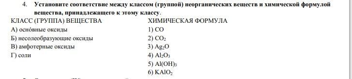Установите соответствие между классом (группой) неорганических веществ и химической формулой