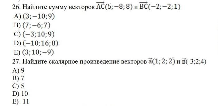 26) AC+BC= (5-2;-8-2;8+1)=(3;-10;9)