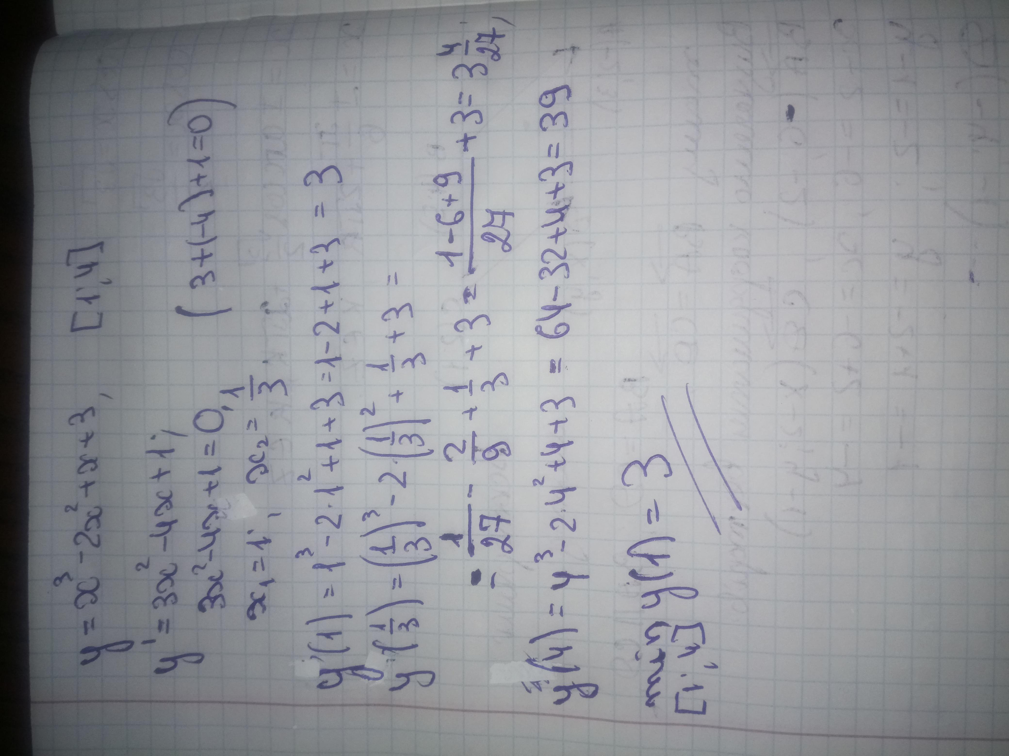 Минимум исходной функции равен 3 (при х=1), максимум 4*9+3=39 (при х=4)