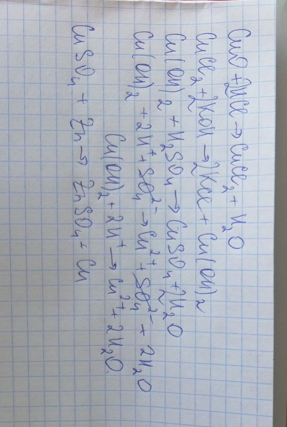 CuO → CuCl2 → Cu(OH)2 → СuSO4 → Cu