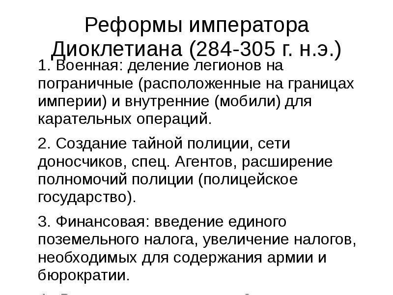 2.Какую реформу предпринял император Диоклетиан, чтобы укрепить империю?