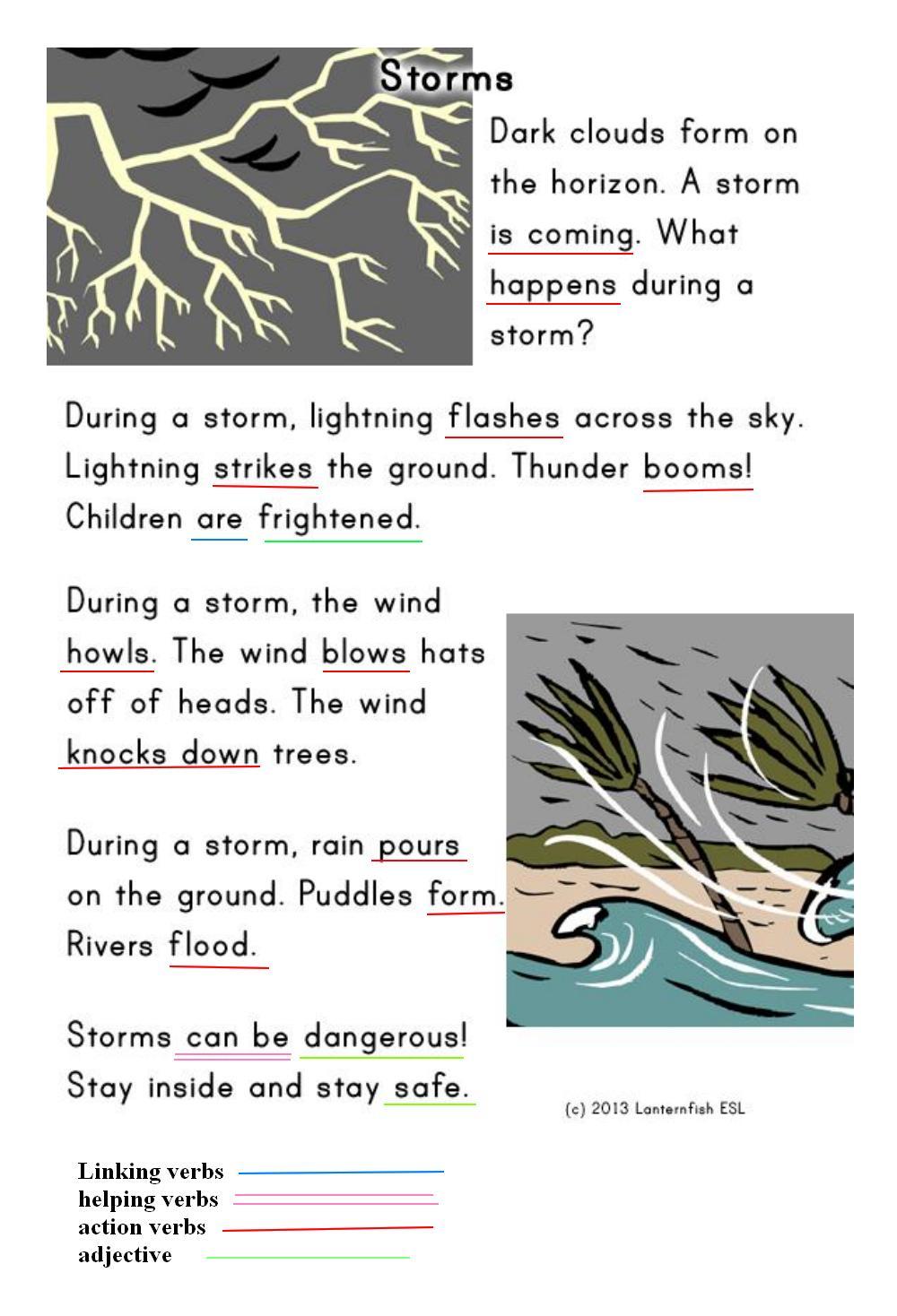 Найдите Linking verbs, helping verbs, action verbs, adjective