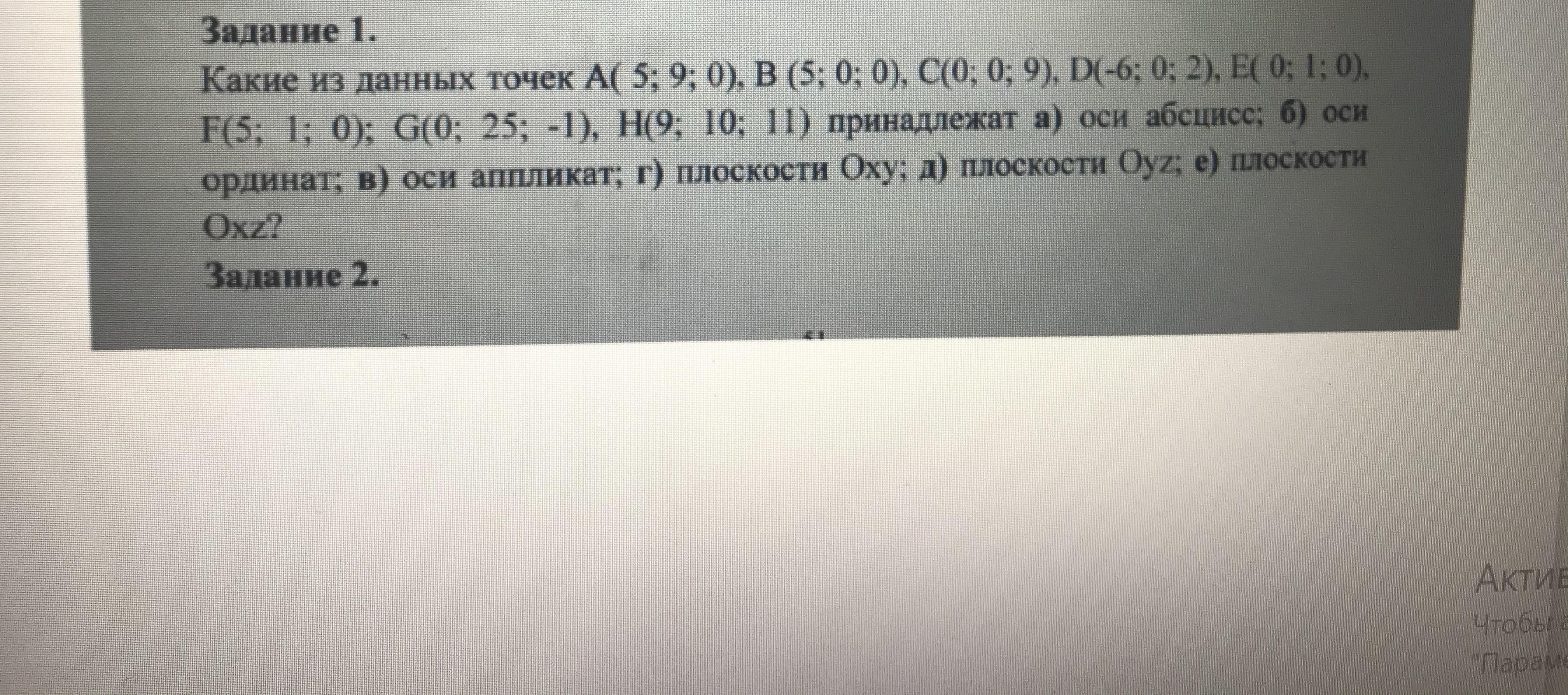 в) оси ОZ принадлежит точка C(0,0,9) ,