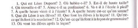 9. Что сказал Леон своим ученикам? 10. Что делают ученики на уроке? 11. Что они делают на перемене? 12. Что они делают на уроке грамматики?