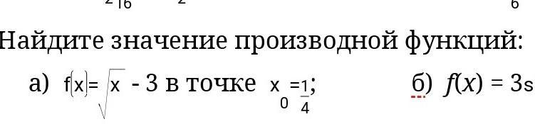 Решение: тут надо знать чему равна производная от √х, а производная от числа равна 0: