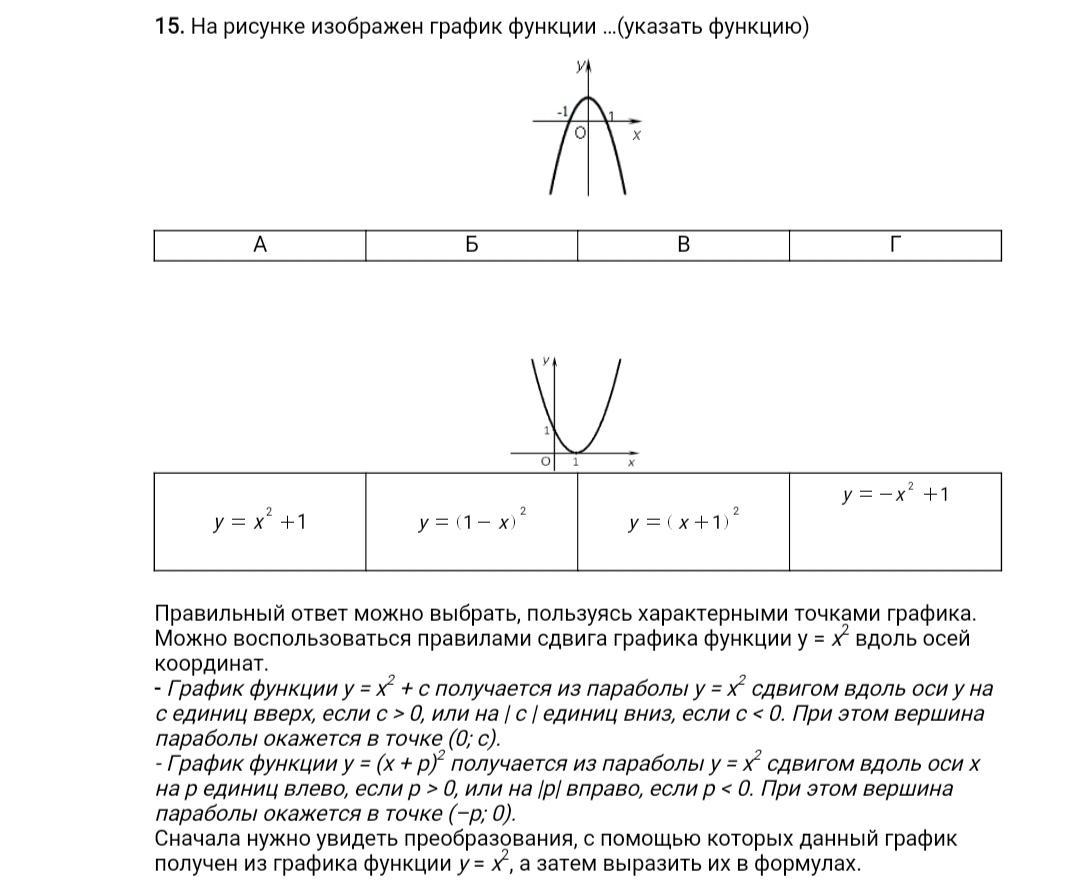 Верхний, "перевёрнутый" график - график функции, выраженный уравнением у= -х²+1.