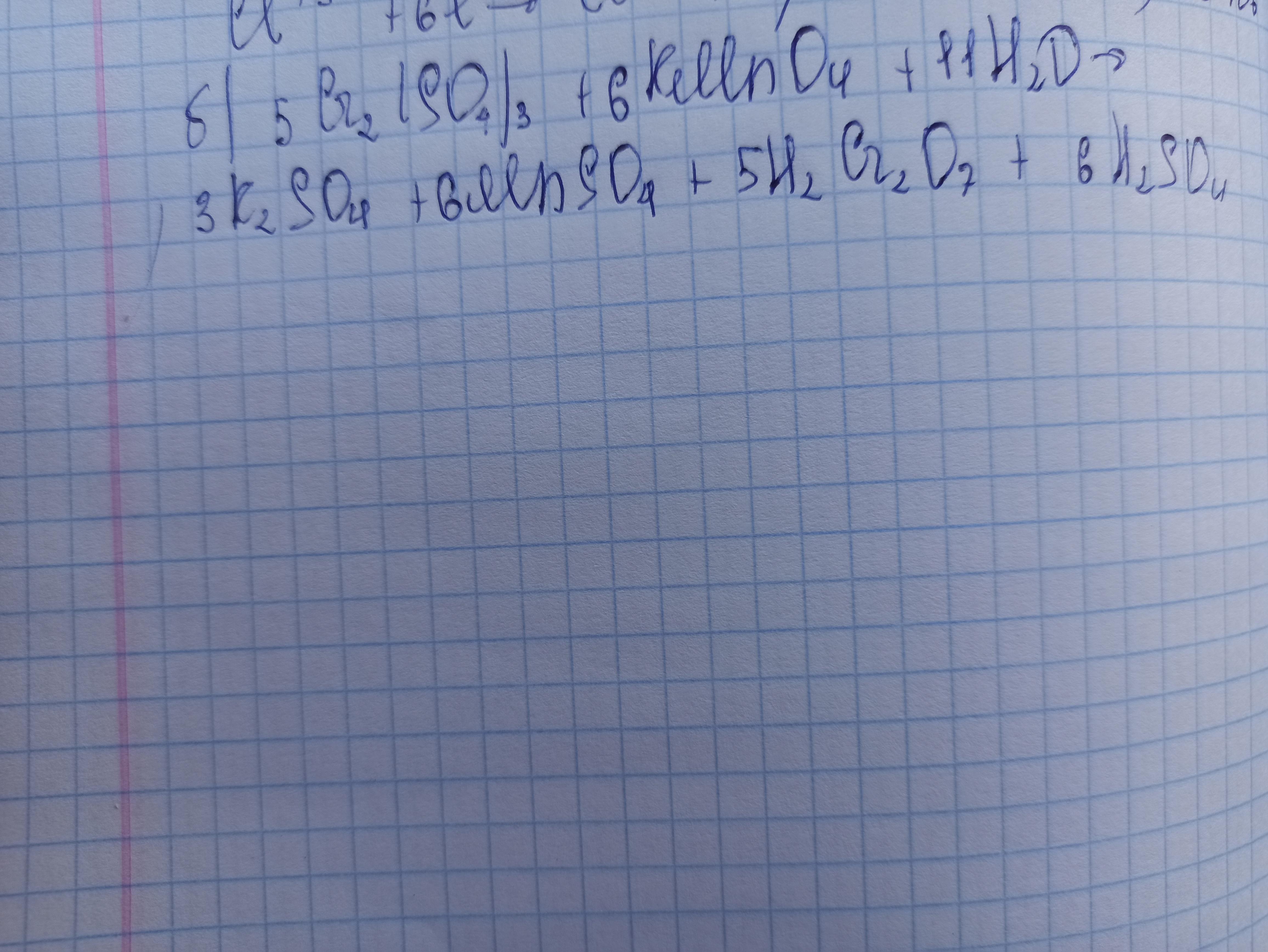 5Cr₂(SO₄)₃ + 6KMnO₄ + 11H₂O → 3K₂SO₄ + 6MnSO₄ + 5H₂Cr₂O₇ + 6H₂SO₄