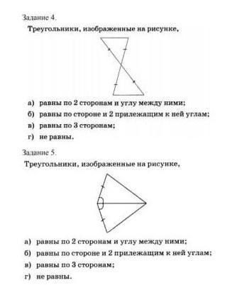 4) а: равны по 2 сторонам и углу между ними