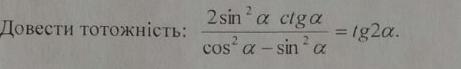 Из левой части получим (2sin²α*cosα/sinα)/cos2α=sin2α/cos2α=tg2α Доказано. Использовал 2sinα*cosα=sin2α; cos²α-sin²α=cos2α