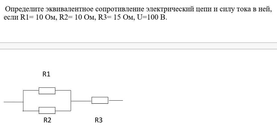 Rek=R1*R2/R1+R2+R3=5+15=20om I=U/Rek=100/20=5a