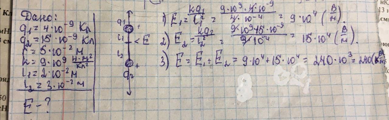 Два точечных заряда 4нКл и 15 нКл расположены на расстоянии 5 см друг от друга...