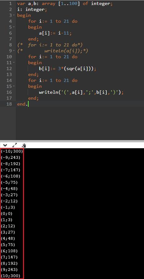 Код на Паскале, выводит значения в виде "(x;y)" с интервалом в 1 единицу для "x" (для "y" наследственно). Прикрепил вывод компилятора с кодом, код в ответе и код в текстовом документе (будьте внимательны с отступами):